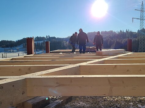 Dank modernster Fertigungstechniken und hochwertiger Materialien garantieren wir Ihnen eine effiziente Umsetzung Ihres Bauprojekts. Unsere Vorfertigung in der Werkhalle ermöglicht eine schnelle und präzise Montage vor Ort, wodurch Bauzeiten erheblich verkürzt werden. Dies sorgt nicht nur für eine reibungslose Umsetzung, sondern reduziert auch Kosten und witterungsbedingte Verzögerungen. Unsere Leistungen im Holzbau: